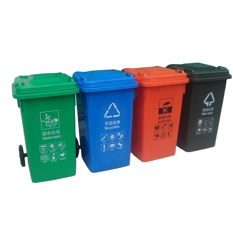塑料垃圾桶选用的具有高冲击强度的HDPE(低压高密度聚乙烯)为原料一次注塑而成整体性能好,本身就是可循环利用的环保产品。比起其它类