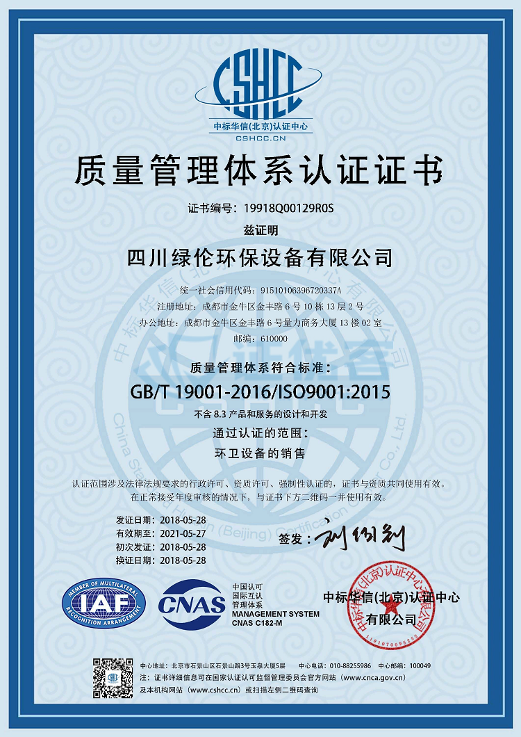 质量管理体系认证证书