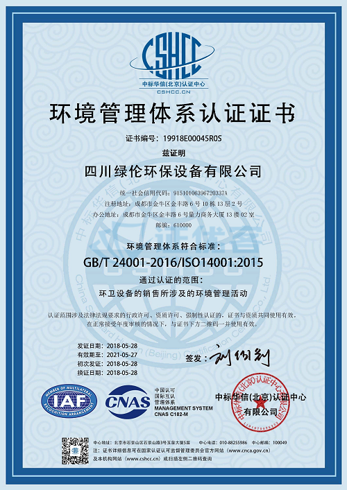 环境管理体系认证证书