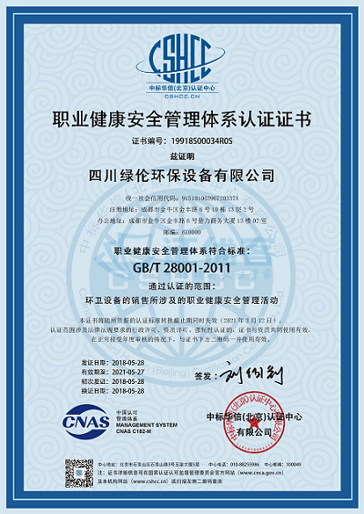 职业健康安全管理体系认证证书