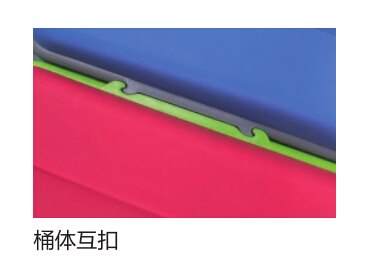 产品特点:环保聚丙烯材料生产,耐用;桶体带简易互扣设计,可将桶体之间互相固定;